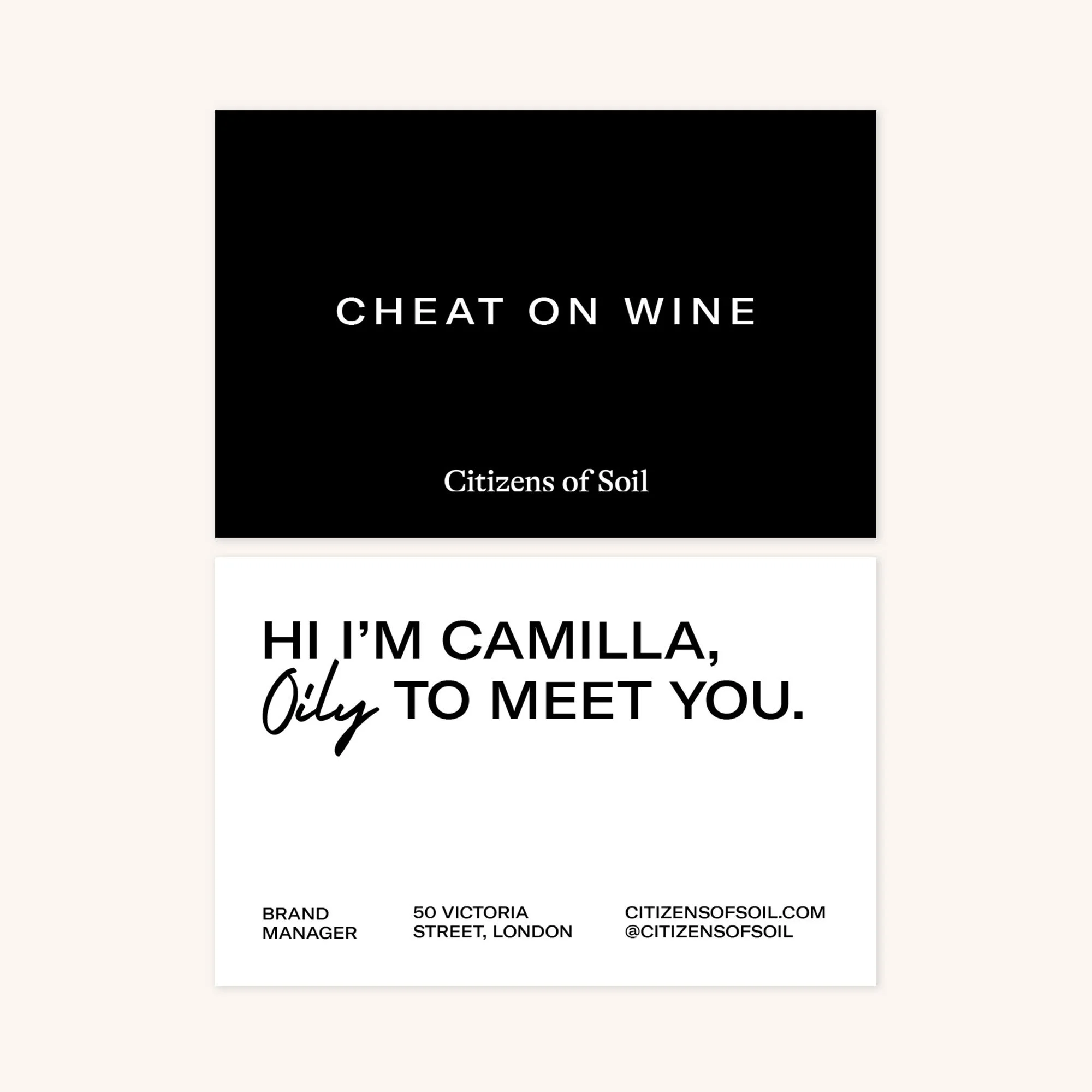 I also created business cards using their play on Olive Oil being the new luxury substitute for wine.