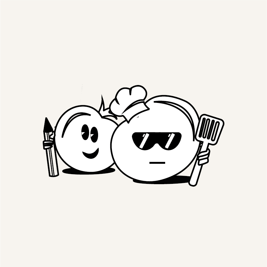 Living in the creative scenes of East London, Eat My Words were inspired by t-shirt designs from various restaurants and businesses in the area. They asked me to come up with an illustration that would reflect their business and that they could place on their merchandise. Made up of a chef and a copywriter, one small and one tall I represented the founders as two pomodors to fit with their Italian cusine.