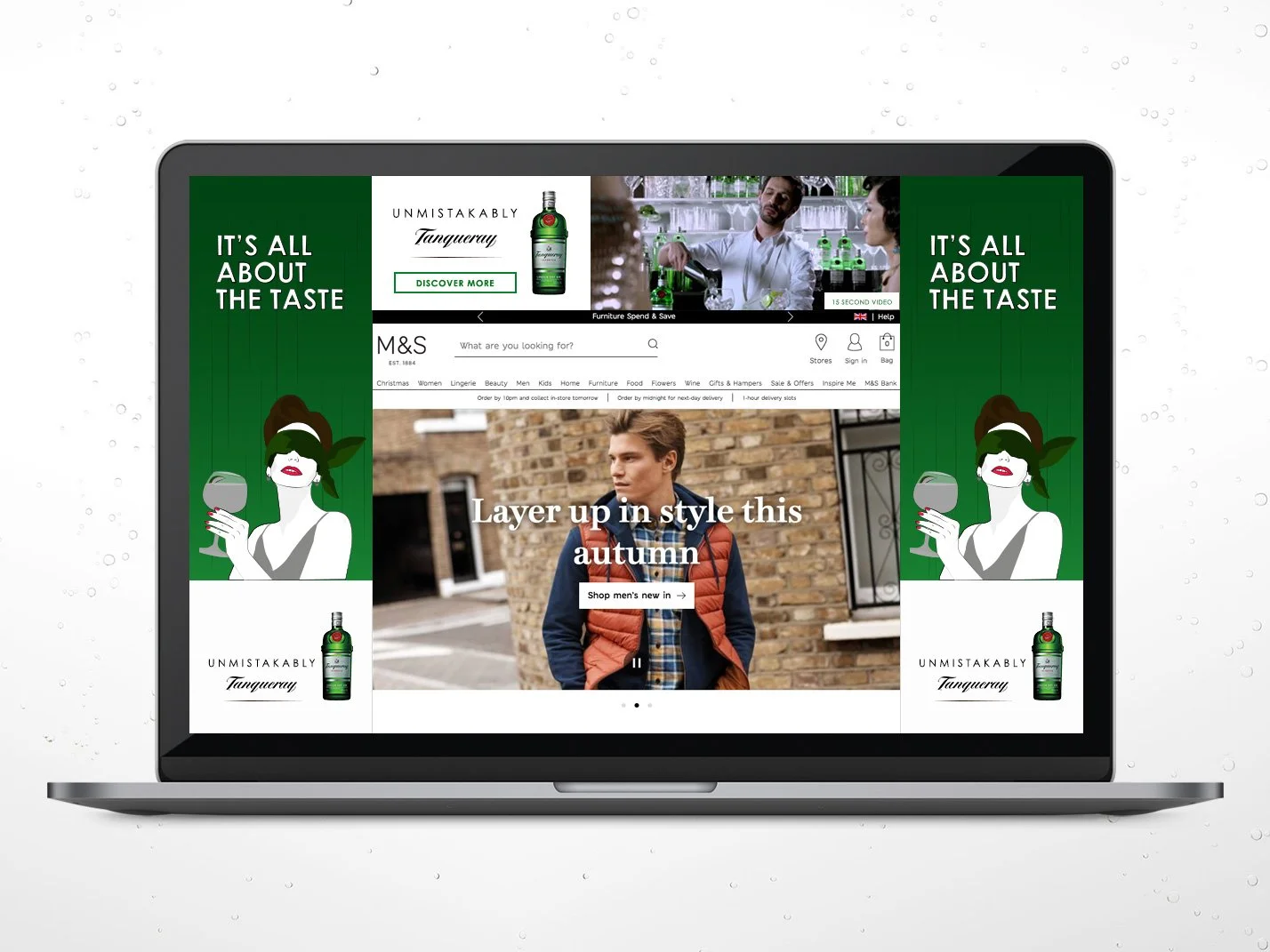 Tanqueray was fun to work on as they had no assets to supply us for this pitch so I had to illustrate the animated woman. Following their campaign at the time I used the female figure to brainstorm the idea that as the user scrolls, the woman’s blindfold would move down over the female’s face accentuating the “It’s all in the taste” caption. A fun and quirky awareness ad which would catch the user’s eye.